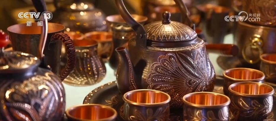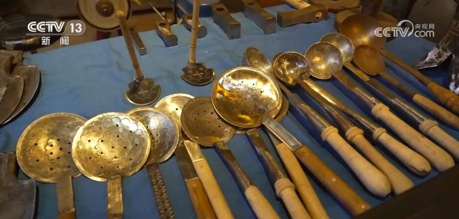 總臺記者 劉菲:如今的古城最吸引人們的并非熱鬧的商業(yè)街,而是一個個非物質(zhì)文化遺產(chǎn)的手工制作,現(xiàn)在在古城里有20多種的非遺制作。在很多年前我曾經(jīng)來過這里,這里就是一個小小的鐵匠鋪,而如今再來到這兒,已經(jīng)變成了一個打鐵技藝的展示館。小到一個湯勺,大到生產(chǎn)農(nóng)具,聽著這打鐵的聲音,也仿佛把我?guī)Щ亓水?dāng)年。