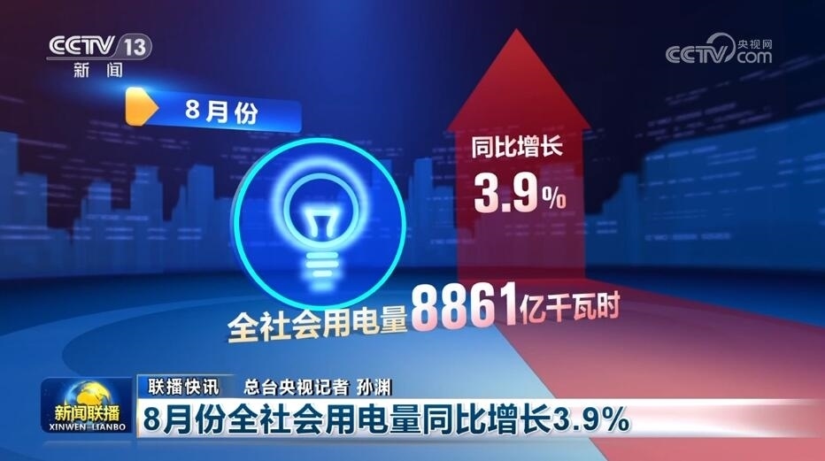 8月份全社會(huì)用電量同比增長(zhǎng)3.9%