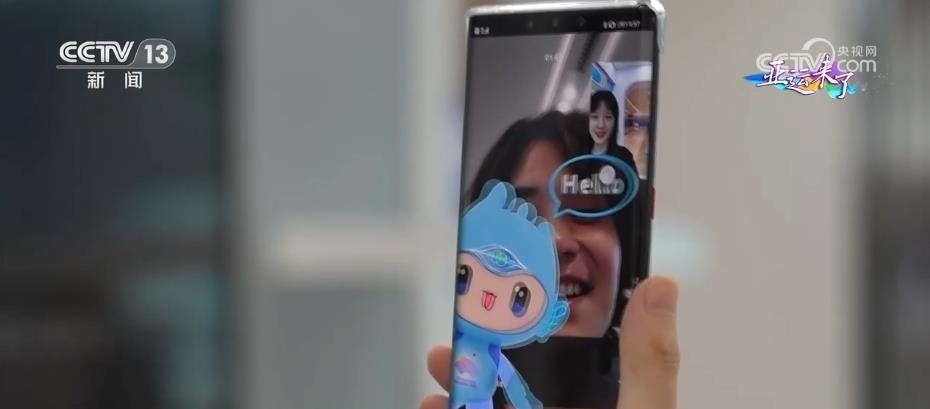 目前,“5G新通話”可實(shí)現(xiàn)中英雙語(yǔ)互譯。此外,大家看到屏幕里向我們揮手的亞運(yùn)吉祥物了嗎?這就是趣味通話的其中一個(gè)應(yīng)用場(chǎng)景。配合亞運(yùn)主題,研發(fā)人員設(shè)計(jì)了多種特定手勢(shì)識(shí)別,當(dāng)我們對(duì)著鏡頭打招呼或者比愛(ài)心的時(shí)候,就可以觸發(fā)趣味通話功能,亞運(yùn)吉祥物也能和我們同屏。