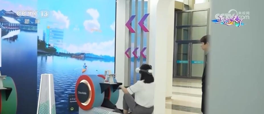 在5G和實(shí)時(shí)云渲染技術(shù)的支持下,配合劃船機(jī)和VR眼鏡,在主媒體中心就能實(shí)現(xiàn)“泛舟西湖”,沉浸式觀賞晴天、雨天等不同天氣情況下,西湖從斷橋到雷峰塔的沿湖美景。并列的兩臺(tái)劃船機(jī)還可以聯(lián)機(jī)比賽,讓體驗(yàn)者在西湖美景中享受運(yùn)動(dòng)和VR競(jìng)技帶來(lái)的樂(lè)趣。