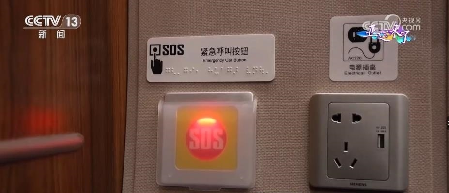 動車組的4號車廂為無障礙車廂,有無障礙衛(wèi)生間、輪椅存放區(qū),還有盲文標(biāo)識以及相應(yīng)的設(shè)施設(shè)備,為乘客提供無障礙出行服務(wù)。