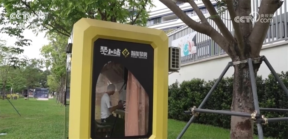 總臺(tái)央視記者 喬亞美:在深圳的街頭,我們發(fā)現(xiàn)了一些像我身后這樣的小型智能琴房,我們了解到,像這樣的智能琴房只需要通過小程序或者手機(jī)掃碼提前預(yù)約就可以免費(fèi)使用了,我已經(jīng)提前預(yù)約了這會(huì)兒的時(shí)間,我們一起去體驗(yàn)一下。