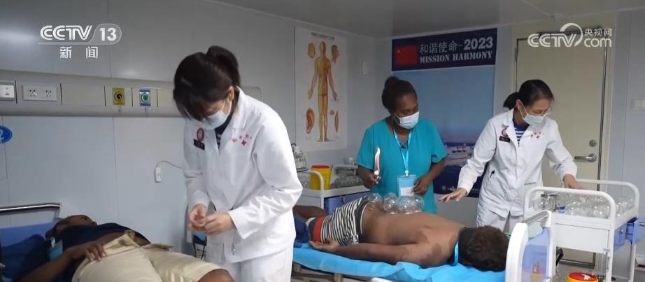 醫(yī)院船帶來(lái)的不僅是光明,還有包括拔罐、針灸、推拿在內(nèi)的傳統(tǒng)中醫(yī)門診?!昂推椒街邸陛d著中華民族傳統(tǒng)醫(yī)學(xué),漂洋過(guò)海把中醫(yī)藥文化根植于南太平洋。