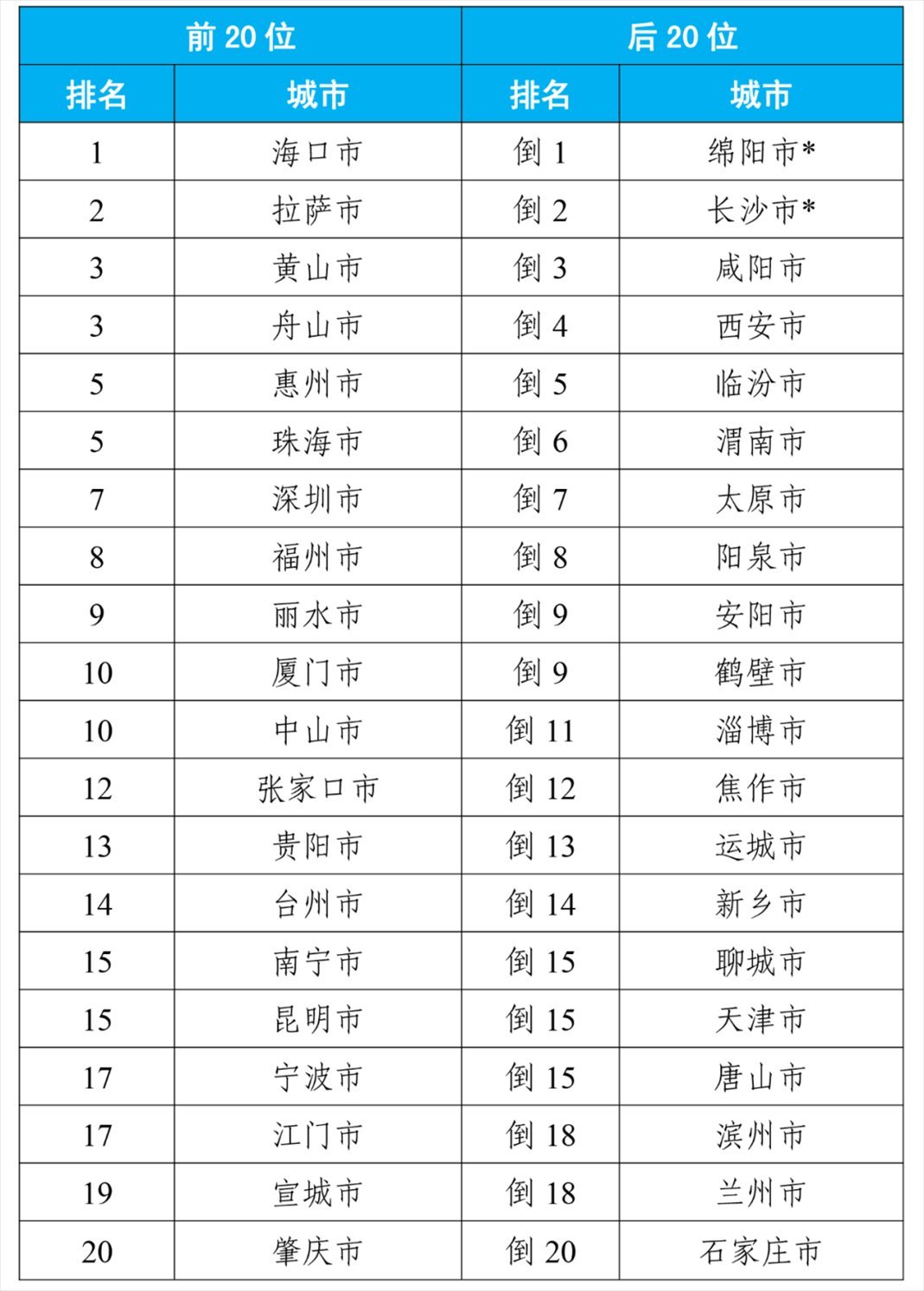 8月,168個(gè)重點(diǎn)城市中,空氣質(zhì)量排名前20位城市依次是拉薩、珠海和??诘瘸鞘校◤牡?名至并列第19名);空氣質(zhì)量排名后20位城市依次是太原、晉城和陽(yáng)泉等城市(從倒數(shù)第1名至并列倒數(shù)第20名)。見附表1。