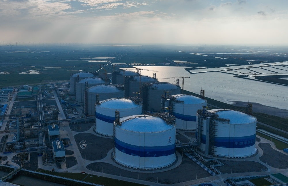 9月2日無(wú)人機(jī)拍攝的中國(guó)海油鹽城濱海LNG項(xiàng)目。