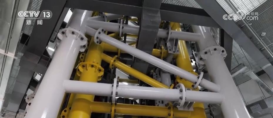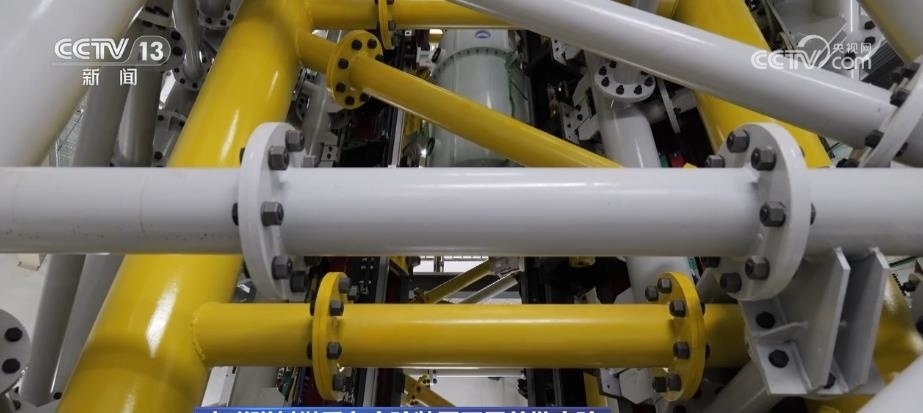 整個(gè)實(shí)驗(yàn)裝置的內(nèi)部是一個(gè)鋼架結(jié)構(gòu),就像是一個(gè)大電梯。工程師介紹,整個(gè)實(shí)驗(yàn)裝置沒有一處使用焊接,所有的連接是靠4萬多顆螺栓,精準(zhǔn)地鉚釘在一起。