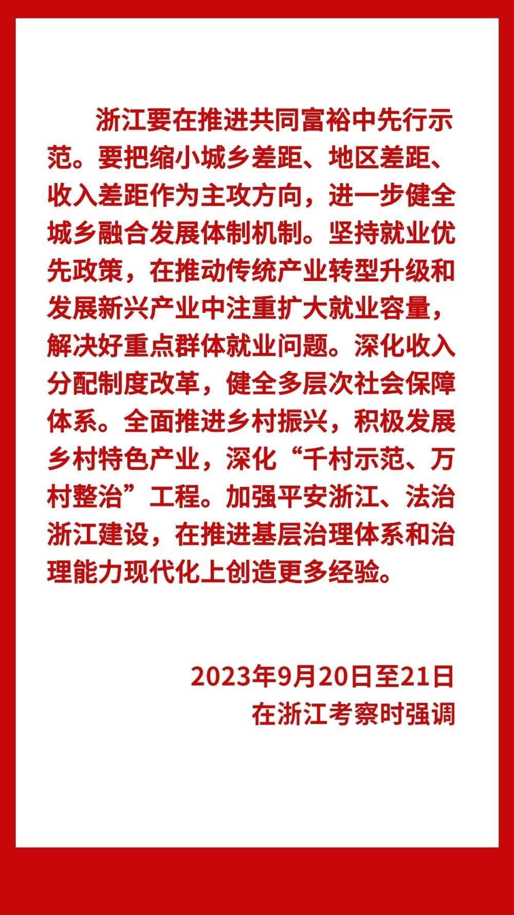 9月20日至21日,中共中央總書記、國家主席、中央軍委主席習近平在浙江考察。20日上午,習近平來到金華市義烏市后宅街道李祖村考察調研,先后在村黨群服務中心、“共富市集”、扎染商鋪等場所了解李祖村發(fā)展變化情況。他說,李祖村扎實推進共同富裕,是浙江“千萬工程”顯著成效的一個縮影,要再接再厲,在推動鄉(xiāng)村振興上取得更大成績。鄉(xiāng)村振興潛力無限、大有可為,鄉(xiāng)親們要努力奮斗,一起奔向共同富裕的美好明天。