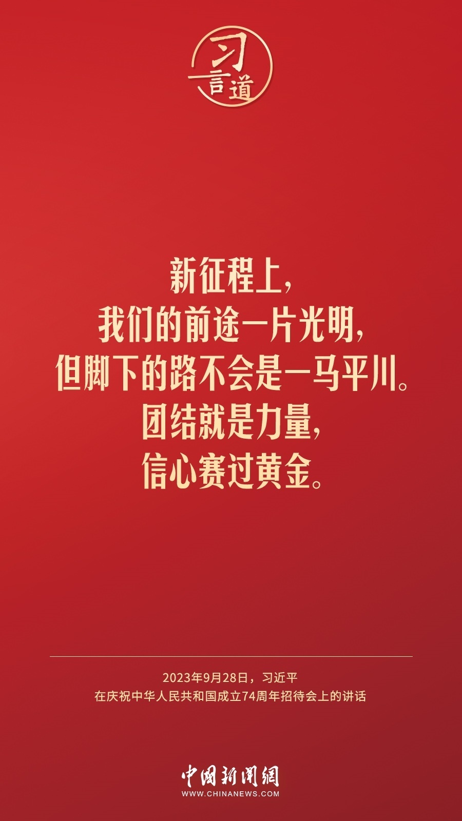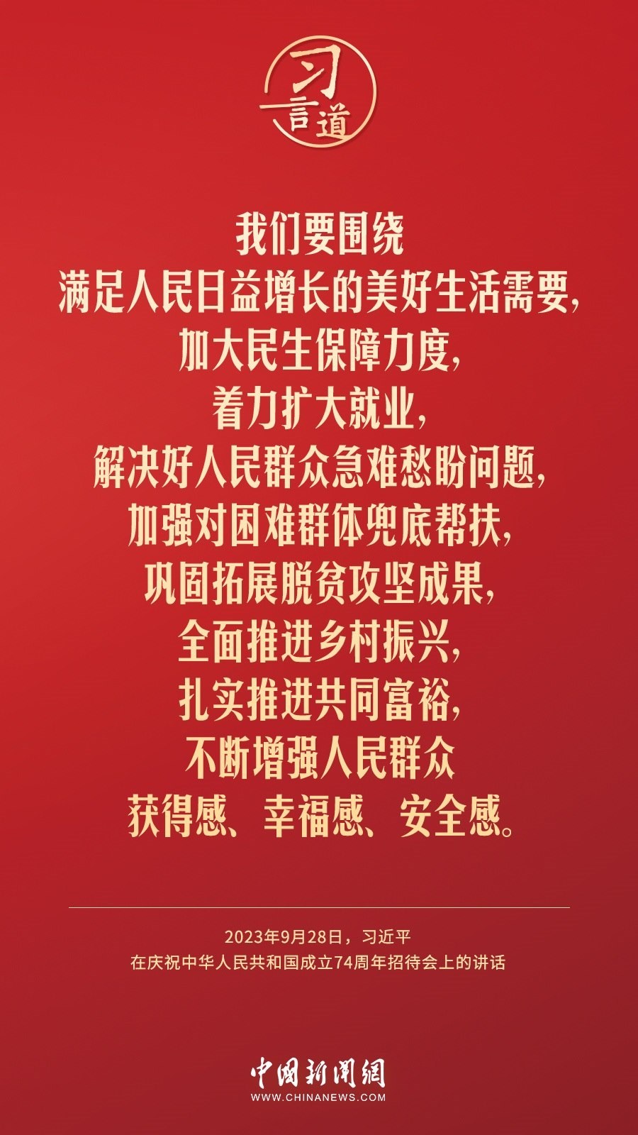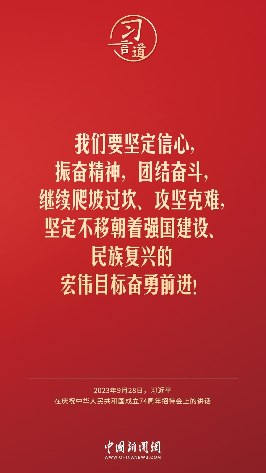 慶祝中華人民共和國成立74周年招待會28日晚在人民大會堂舉行。中共中央總書記、國家主席、中央軍委主席習(xí)近平出席招待會并發(fā)表重要講話。他強(qiáng)調(diào)——