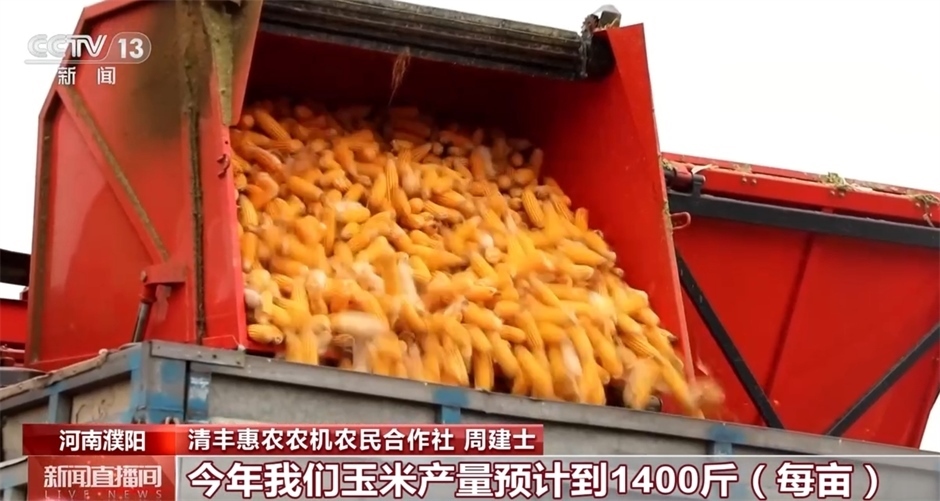 在濮陽市清豐縣固城鎮(zhèn)張莊村,三臺莖穗兼收玉米收割機(jī)在田間來回穿梭,一片繁忙。