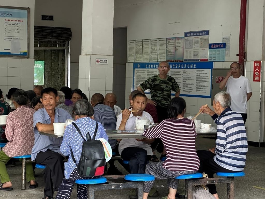 近13時,食堂里已人聲鼎沸,數十名村民正在用餐?;ú顺慈狻统赐炼蛊?、蛋花湯……兩葷一素、三菜一湯的配置,讓從土門村轉移到安置點的村民劉貴蘭挺滿意:“早上吃的是牛奶、饅頭、包子,晚上也是三菜一湯。”