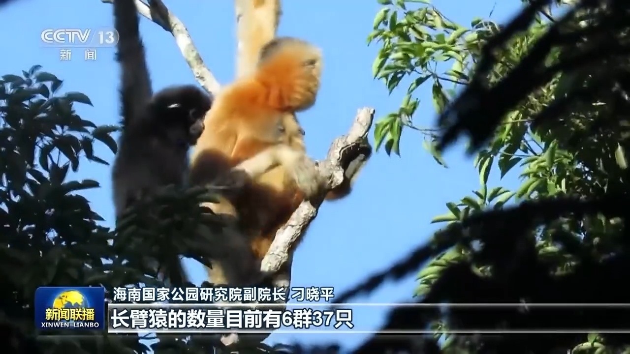 海南國家公園研究院副院長 刁曉平:近三年來(我們)發(fā)現(xiàn)了許多新的物種,有50多種,長臂猿的數(shù)量目前有6群37只。