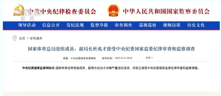 總臺(tái)央視記者 宋琎:今年3月27日,二十屆中央首輪巡視對(duì)象名單公布?!皩?duì)國(guó)家體育總局黨組開(kāi)展機(jī)動(dòng)巡視”這一消息迅速成為社會(huì)熱點(diǎn)。之后不到一周,中央紀(jì)委國(guó)家監(jiān)委通報(bào),時(shí)任國(guó)家體育總局黨組成員、副局長(zhǎng)杜兆才接受審查調(diào)查。體育領(lǐng)域反腐成為今年反腐敗工作的一大重點(diǎn)。