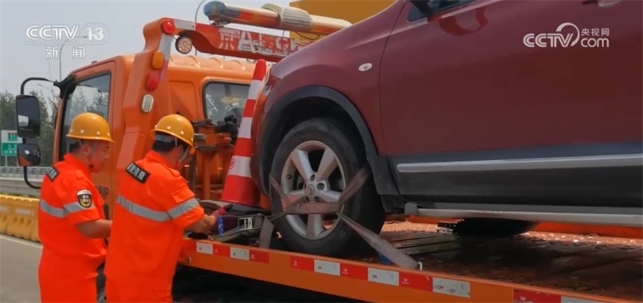 車主:(清障救援人員)也沒有防曬,這么高的氣溫,又是大中午,這天挺熱的,太不容易了,謝謝他們。