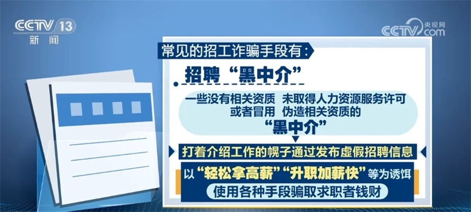 央視網(wǎng)消息:生活中常見的招工騙局有哪些?求職者應該如何識別?一旦求職者遇到詐騙,又該如何保護自己的合法權益呢?