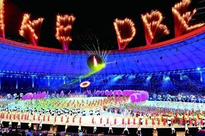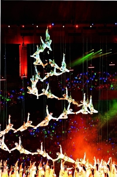 成都大運(yùn)會(huì)開(kāi)幕式現(xiàn)場(chǎng)的文藝演出。本報(bào)記者 郭俊鋒攝/光明圖片