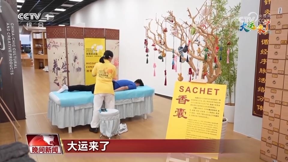 走在大運村里面,在很多地方都可以看到一些中醫(yī)文化的元素。比如在這個中醫(yī)體驗區(qū)里就可以了解中醫(yī)古籍,還能感受按摩,甚至能夠在這里進行把脈問診,所以這個區(qū)域也吸引了很多代表團成員和運動員到這里來體驗。