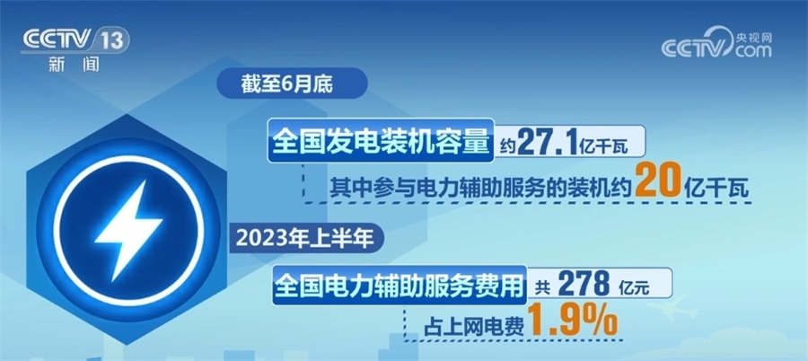 電力輔助服務(wù)是指為維護(hù)電力系統(tǒng)安全穩(wěn)定運(yùn)行、保障電能質(zhì)量、促進(jìn)新能源消納,由市場運(yùn)營機(jī)構(gòu)統(tǒng)一組織采購調(diào)用的調(diào)峰、調(diào)頻、備用等系統(tǒng)調(diào)節(jié)服務(wù)。截至6月底,全國發(fā)電裝機(jī)容量約27.1億千瓦,其中參與電力輔助服務(wù)的裝機(jī)約20億千瓦。2023年上半年,全國電力輔助服務(wù)費(fèi)用共278億元,占上網(wǎng)電費(fèi)1.9%。
