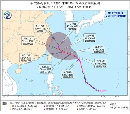 8月1日開始,受副熱帶高壓變?nèi)?、形態(tài)改變的影響,“卡努”的引導氣流將變得不太清晰,其移速也將減緩。最新預報顯示,“卡努”將以每小時15-20公里的速度向西北方向移動,強度還將有所增強,8月2日夜間移入東海,逐漸轉(zhuǎn)向偏北方向移動,移速明顯減慢。