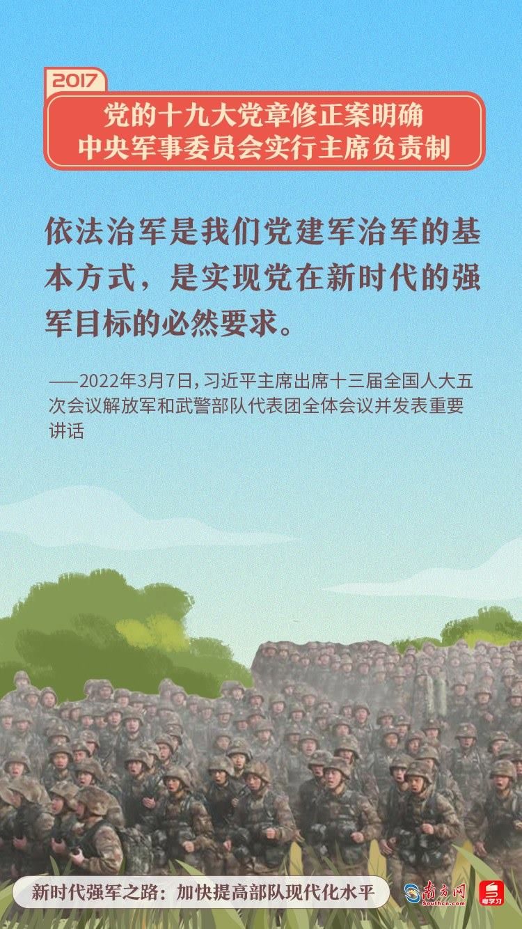 黨的十九大黨章修正案明確中央軍事委員會實行主席負責制