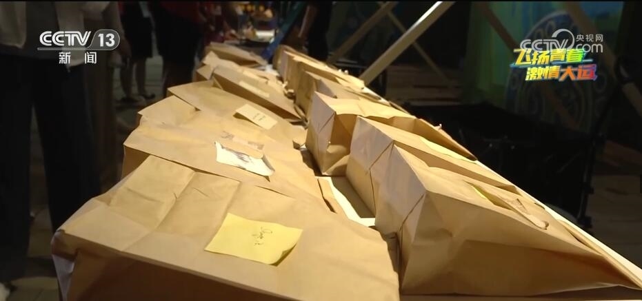 在大運村的文化市集“禮物漂流記”活動現(xiàn)場,工作人員正指引參與活動的運動員們完成互換禮物的游戲。參與者經(jīng)過登記,留下自己的禮物并寫下祝福語,就可以在盲盒區(qū)挑選一份禮物帶走。不同國家的徽章、帽子、衣服,運動員們自制的手鏈、戒指,甚至從家鄉(xiāng)帶來的石頭,來自世界各地的特色禮物在大運村傳遞著文化、友誼和美好的祝福。