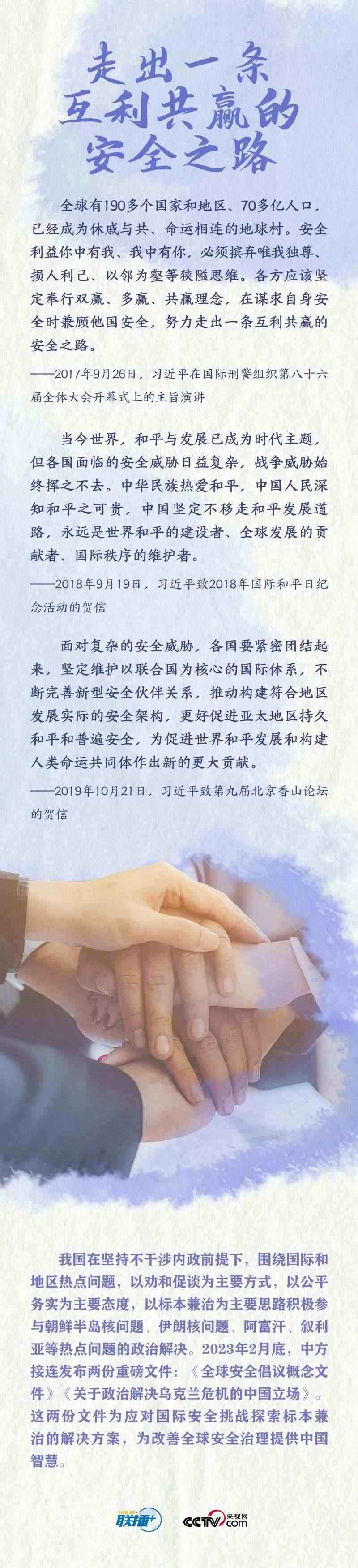 從2014年在亞信第四次峰會上提出亞洲安全觀,到2016年在二十國集團杭州峰會期間闡述中國的新安全觀,從2017年在聯(lián)合國日內(nèi)瓦總部闡述如何建設(shè)持久和平、普遍安全的世界,到2022年提出全球安全倡議,習(xí)近平主席深刻洞察世界發(fā)展大勢,不斷發(fā)展和完善具有中國特色的安全理念,為破解全球安全困境指明前進方向、明確合作路徑。