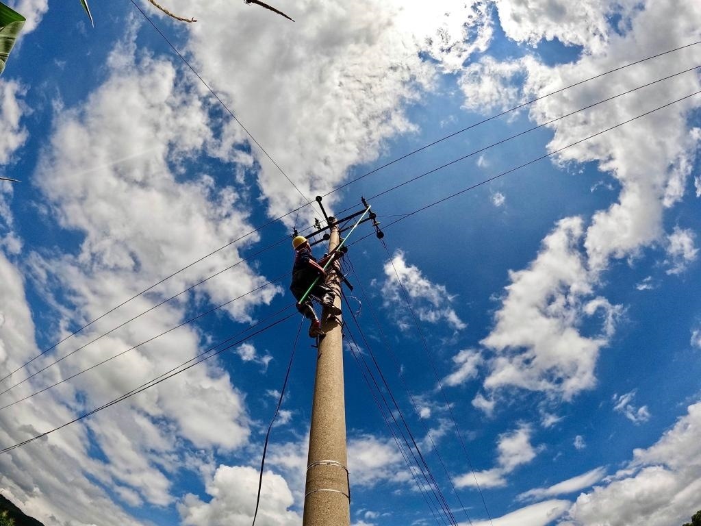 8月5日,電力搶修人員在進(jìn)行作業(yè)。(王潤(rùn)澤 攝)