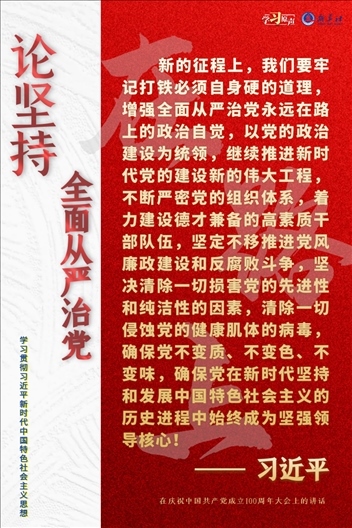 治國(guó)必先治黨,黨興才能國(guó)強(qiáng)。新征程上,我們要始終推進(jìn)黨的自我革命。一個(gè)飽經(jīng)滄桑而初心不改的黨,才能基業(yè)常青;一個(gè)鑄就輝煌仍勇于自我革命的黨,才能無(wú)堅(jiān)不摧。