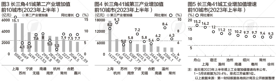 第一財(cái)經(jīng)記者梳理公開數(shù)據(jù)發(fā)現(xiàn),長三角41城中,共有8個(gè)城市的上半年GDP超5000億元,6市增速達(dá)到或超過8%。