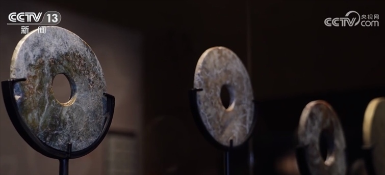 總臺記者 朱睿祺:繼續(xù)往里走,就可以看到以玉器為專題的展廳“玉魂國魄”。良渚先民圍繞對神的崇拜,設(shè)計出了一套用以區(qū)別階層、標(biāo)識身份、反映等級的玉禮器系統(tǒng)。在這里,大家能找到杭州第19屆亞運會吉祥物“琮琮”的原型——玉琮,還有第4屆亞殘運會的吉祥物“飛飛”的原型——良渚神鳥。