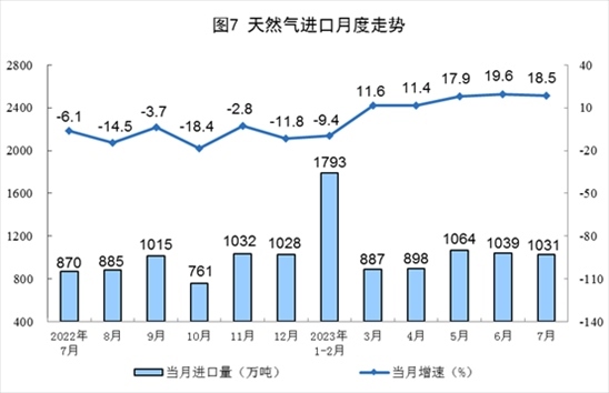 1—7月份,生產(chǎn)天然氣1340億立方米,同比增長5.7%。進(jìn)口天然氣6688萬噸,同比增長7.6%。
