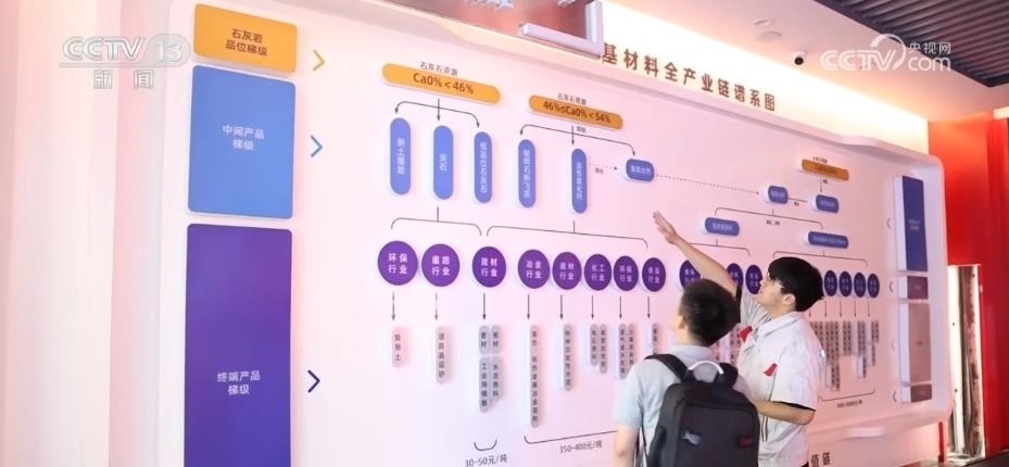 在企業(yè)展廳里,工作人員把記者引向一張產業(yè)鏈譜系圖。最基礎的石灰石,既可以是水泥的生產原料,還可以根據石頭的鈣含量和加工深度,延伸出氧化鈣、碳酸鈣、納米鈣等各種各樣的下游產品,用于食品、醫(yī)藥、電子等領域。產品鏈條每往下延伸一步,價格就要翻上幾倍。