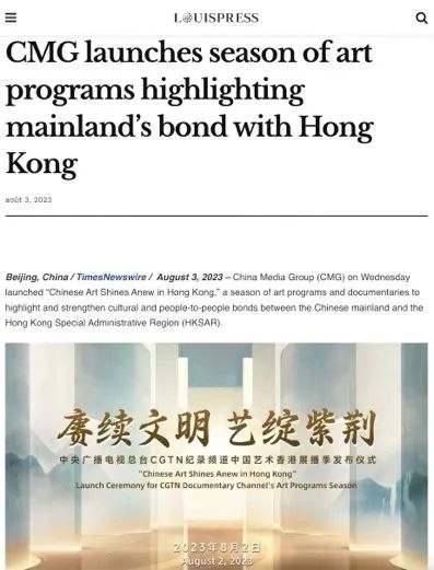 總臺(tái)CGTN在官網(wǎng)發(fā)布的《中國藝術(shù)香港展播季 讓觀眾零距離觸摸源遠(yuǎn)流長的中華文明》稿件被來自美國、英國、法國、澳大利亞、韓國、加拿大、意大利等20個(gè)國家和地區(qū)的799家海外主流網(wǎng)絡(luò)媒體轉(zhuǎn)載。美國《國際日報(bào)》《歐洲僑報(bào)》《葡新報(bào)》《非洲時(shí)報(bào)》《委國僑報(bào)》、新西蘭格局傳媒網(wǎng)站、歐僑網(wǎng)和日本華商網(wǎng)等海外華文媒體也以多種形式刊載轉(zhuǎn)發(fā)了相關(guān)報(bào)道。