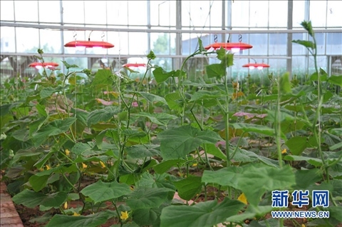 烏蘭察布冷涼蔬菜院士工作站試驗(yàn)基地溫室內(nèi),利用植物生長(zhǎng)燈模擬日光,增強(qiáng)光合作用,提高產(chǎn)品質(zhì)量。新華網(wǎng) 周遠(yuǎn)鋼 資料圖