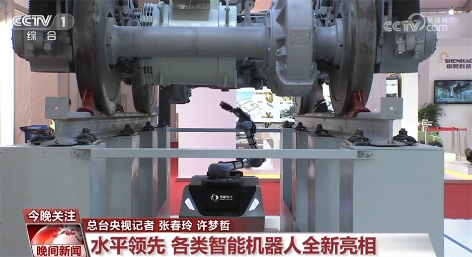 現(xiàn)在您看到的是一款列車智能巡檢機器人,它可以替代成熟的技術(shù)工人自主采集車底、車側(cè)高清圖像和3D數(shù)據(jù),巡檢定位精度達到正負5毫米。