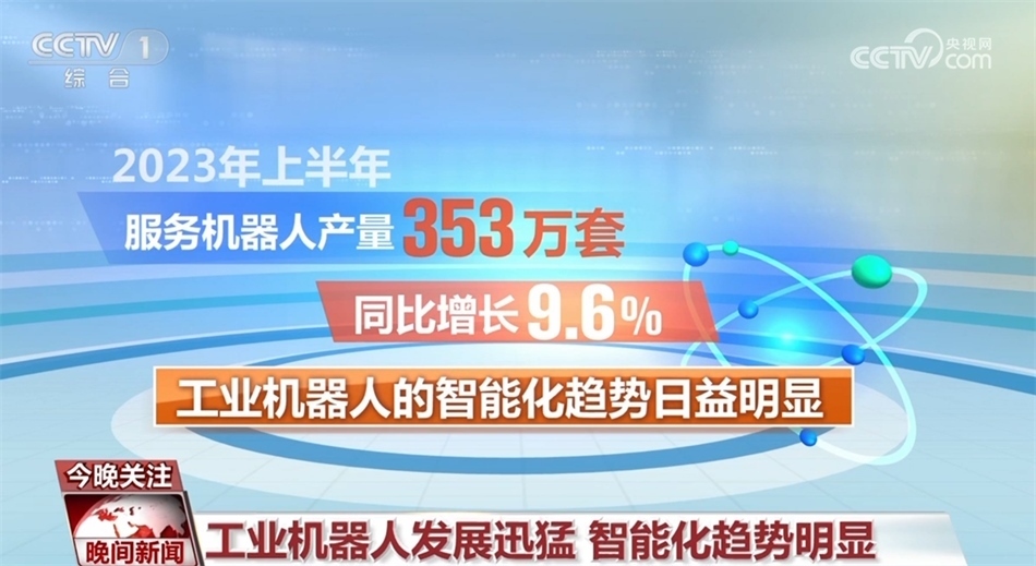 據(jù)了解,我國工業(yè)機器人銷量已占全球的一半以上,連續(xù)10年居世界首位。2023年上半年,工業(yè)機器人產(chǎn)量達到了22.2萬套,同比增長5.4%,服務(wù)機器人產(chǎn)量353萬套,同比增長9.6%。同時,工業(yè)機器人的智能化趨勢日益明顯。