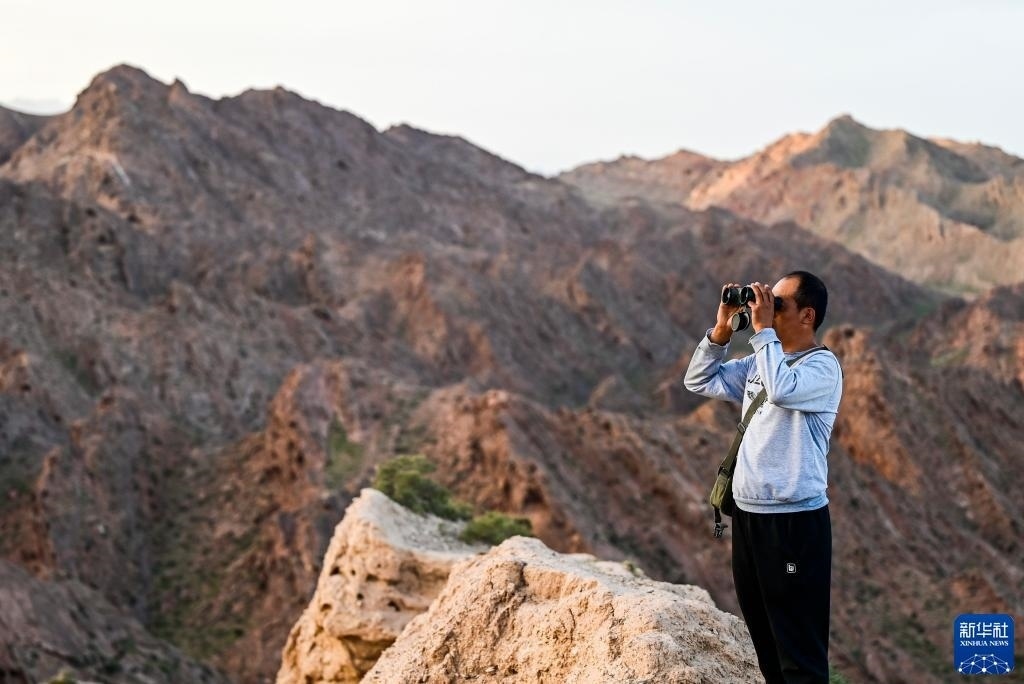 8月20日,董海寧巡查賀蘭山沿線(xiàn)的明長(zhǎng)城永寧段。新華社記者 劉金海 攝