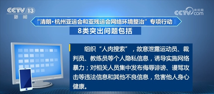 央視網(wǎng)消息:記者昨天(8月28日)從中央網(wǎng)信辦獲悉,為做好杭州亞運(yùn)會和亞殘運(yùn)會保障工作,決定自8月28日至10月29日開展“清朗·杭州亞運(yùn)會和亞殘運(yùn)會網(wǎng)絡(luò)環(huán)境整治”專項(xiàng)行動。專項(xiàng)行動將圍繞賽事舉辦,集中整治散布虛假信息、片面、歪曲傳播突發(fā)事件信息等8類突出問題。