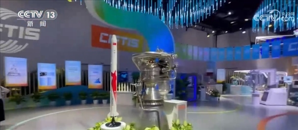總臺記者 王豐:這片區(qū)域是綜合展的一個成就展的專題,這里集中展示了我國在服務業(yè)擴大開放和服務貿易創(chuàng)新發(fā)展方面所取得的一系列成就。比如說這個,這是我國民營企業(yè)藍箭航天自主研發(fā)的朱雀二號火箭,旁邊是自主研發(fā)的天鵲發(fā)動機。今年7月12日,朱雀二號成功發(fā)射升空,是世界上首款將載荷送入預定軌道的液氧甲烷火箭。