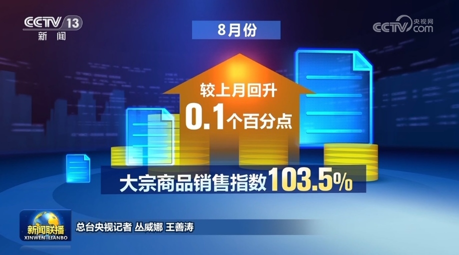 央視網消息(新聞聯播):中國物流與采購聯合會9月5日公布:8月份中國大宗商品指數為102.7%,較上月回升0.4個百分點。大宗商品市場持續(xù)向好發(fā)展,市場供需基本面呈現供需雙強的局面。