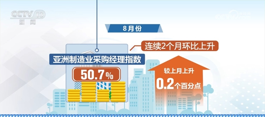 8月份,亞洲制造業(yè)采購經(jīng)理指數(shù)為50.7%,較上月上升0.2個百分點,連續(xù)2個月環(huán)比上升,顯示亞洲制造業(yè)延續(xù)平穩(wěn)增長趨勢。從主要國家看,中國制造業(yè)采購經(jīng)理指數(shù)連續(xù)三個月上升,向好回升勢頭進一步鞏固,中國制造業(yè)呈現(xiàn)持續(xù)穩(wěn)定恢復趨勢,為亞洲制造業(yè)的平穩(wěn)增長提供重要支撐。