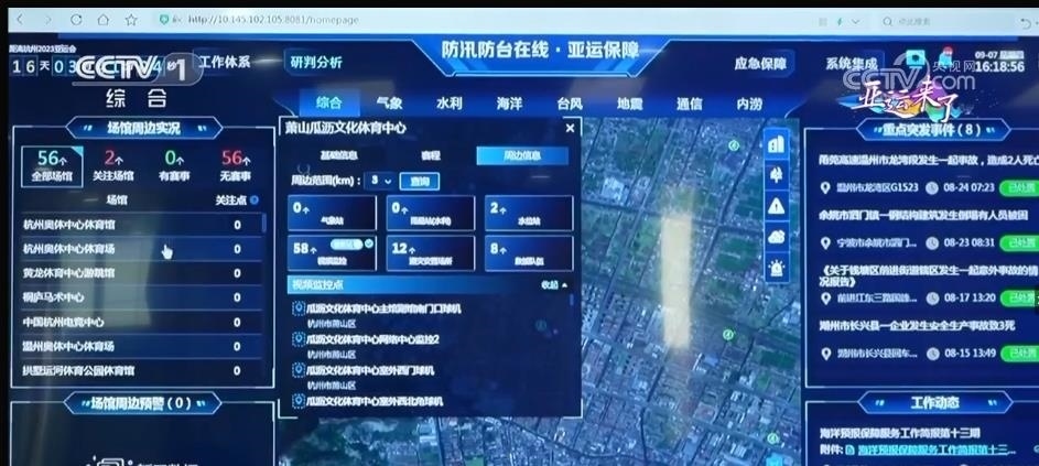此外,杭州亞運保障協(xié)調(diào)組還建立了統(tǒng)一的亞運保障協(xié)調(diào)指揮平臺。56個場館周邊風、雨、水、空氣質(zhì)量等數(shù)據(jù)實現(xiàn)實時在線,地質(zhì)災害、森林防火、潮浪等信息實現(xiàn)自動預警。亞運村消防站、亞運應急用電保障系統(tǒng)也相繼投入使用。