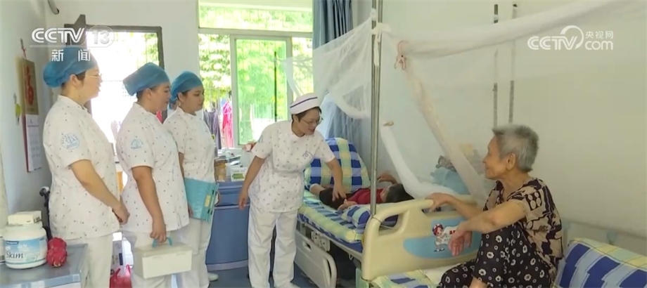 由于住在這里的康復(fù)病人平均年齡都比較大,除了進行正常的護理外,邢少云每到一間病房都會拉著他們的手聊上一會兒,老人們看到邢少云的到來也都顯得格外開心。