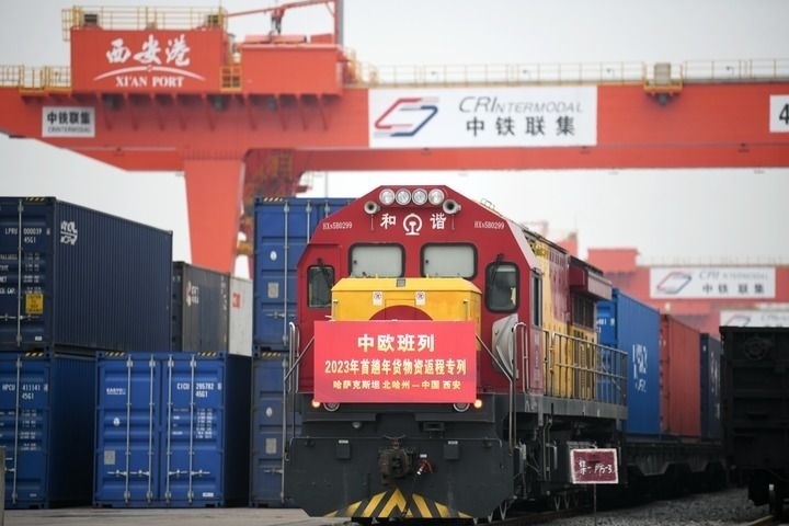 1月13日,滿載著來自哈薩克斯坦1300噸面粉的中歐班列抵達(dá)西安國際港站。這標(biāo)志著2023年首趟中歐班列年貨物資返程專列順利抵達(dá)西安,為即將到來的春節(jié)拉來了“洋年貨”。