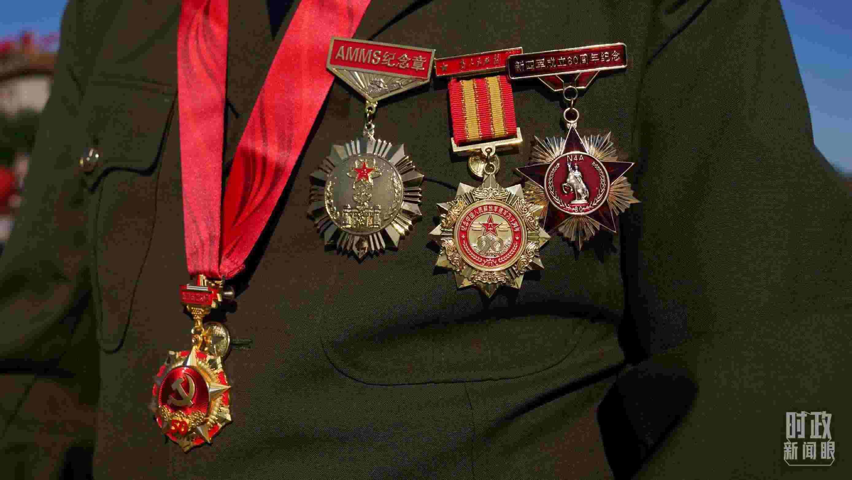 △儀式現(xiàn)場,老戰(zhàn)士代表身上佩戴多枚紀念章。(總臺國廣記者李晉拍攝)