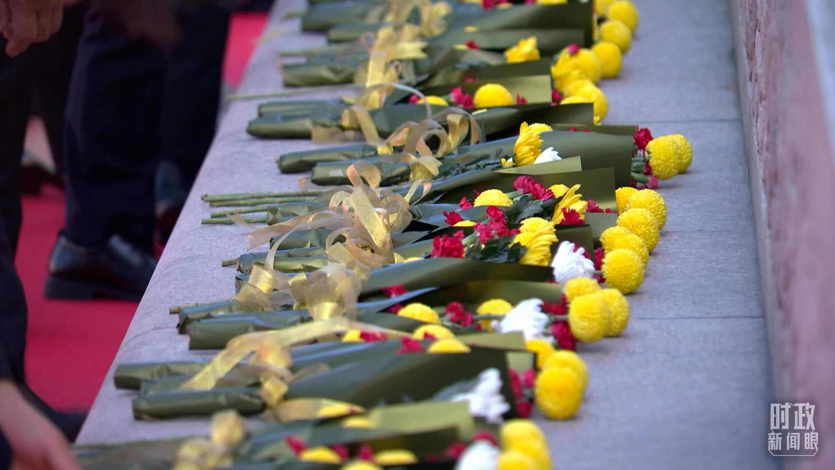 △儀式現(xiàn)場共有9個大型花籃。(總臺央視記者周倜拍攝)