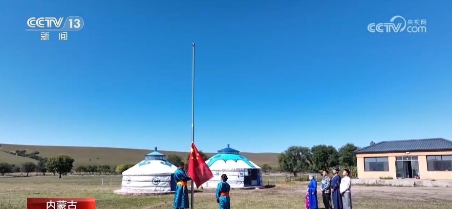 當清晨的陽光照亮草原,牧民霍高娃夫妻倆開始忙碌起來,每年的國慶期間,他們都會自發(fā)的舉行升國旗儀式。2023年,他們還邀請了周邊的牧民朋友一起,參與這個莊嚴的儀式。興安盟科右前旗滿族屯滿族鄉(xiāng)是內蒙古自治區(qū)19個民族鄉(xiāng)之一,這里的牧民世代生活在邊境線上。2022年,滿族屯滿族鄉(xiāng)為156戶邊境牧民,修建了規(guī)范儀式標準的升旗臺,讓五星紅旗冉冉升起在祖國北疆的邊境線上。