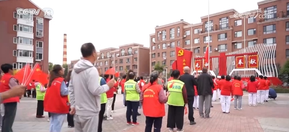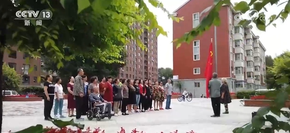 國慶假期,早上8時,小區(qū)升旗儀式準時開始。