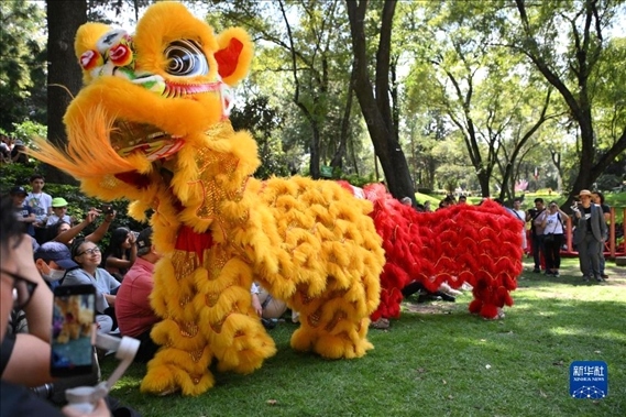 日前,“中墨共享一輪明月”中秋文化活動在墨西哥城舉辦?;顒又校瑏碜灾心珒蓢臄?shù)十組舞獅齊聚共舞,與當?shù)孛癖姎g慶中秋佳節(jié)。