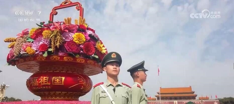在北京,天安門廣場(chǎng)內(nèi)祝福祖國(guó)的巨型花籃吸引著眾多游客前來(lái)觀賞拍攝。武警官兵在完成好巡邏執(zhí)勤任務(wù)的同時(shí),協(xié)助工作人員進(jìn)行游客疏導(dǎo)也成為一項(xiàng)重要的工作。