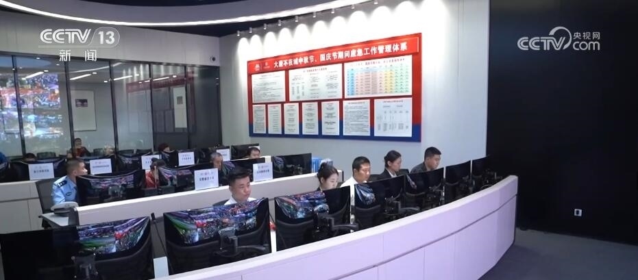 在大唐不夜城安保中心的指揮大廳里,記者看到,包括應(yīng)急、城管、公安、交通等十余個(gè)單位都派出人員在這里聯(lián)合辦公,方便隨時(shí)調(diào)度。安保指揮中心的大屏幕上,實(shí)時(shí)顯示著關(guān)鍵點(diǎn)位的具體情況等多種信息。